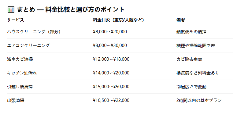 🧹 1. ハウスクリーニング料金比較 — 東京の相場